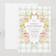 The invitation showcases a sage green gingham background, offering a fresh and inviting canvas that evokes the charm of a sun-dappled garden. Encircling your invitation details is a whimsical green frame design, adorned with an elegant bow. This playful frame adds a touch of sophistication and fun, beautifully highlighting the invitation's vibrant elements.