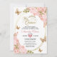 Floral Blush Rosa Dourado Tiara Borboleta Mis Quinceañera Convite
