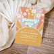 Convite de primeiro aniversário inspirado no Groovy One Retro Sunshine com margaridas estilo anos 70 e fontes e cores boho.