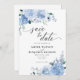 Convite Floral Botânico Azul Elegante Salvar a Data