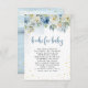 Convite Floral Branco Azul com Glitter Ouro Livros para Be