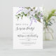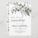 Cartão de convite de aniversário de surpresa para o tema floral russo, com ilustração aquosa de lírios brancos tigre, lavanda e verde.