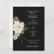 Tanto limpo como decorativo, este convite de casamento rústico apresenta uma linda flor branca com sotaque de pinecones em fundo preto.