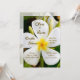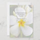 Um casamento é o início de "novos começos". A Plumeria, ou também conhecida como Frangipani, é o símbolo havaiano de "positividade" e "novos começos". Um convite de casamento único com uma fotografia de perto de uma flor branca de Plumeria com folhas tropicais e botões atrás dela. No Havaí, essa flor é usada para colares de lei fazer por causa de sua forma e perfume doce.