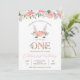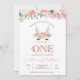 Floral Bunny Face Algum primeiro aniversario Coelhinho Convite Doce Coelhinho no primeiro convite de aniversário para uma menina apresentando um rosto coelho, adoráveis arranjos florais e uma falsa palavra de ouro rosa. Este primeiro convite de aniversário é ideal para uma festa de aniversário temática de coelhos.