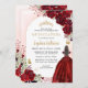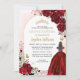 Floral Burgundy Maroon Red Princess Gown Faux Dourado Glitter Sparkle Tiara Crown Butterfly 15 de Aniversário Quinceanera Convite