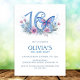 Make the birthday girl’s 16th birthday extra special when you invite friends and loved ones with this floral butterfly birthday party invitation. The customizable text allows you to effortlessly add your name, date and time of the celebration, and the RSVP information. A variety of paper types and corner styles are available for your unique invitations, along with the option to download if you prefer a digital format.