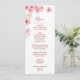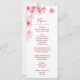 Pink fading watercolor cherry blossoms on a white background. With custom bride and groom names, the wedding date and a custom menu text. On the backside are the names and date to change.