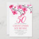 Flor de cereja, Sakura, elegante, cinquenta, flores rosadas, rústicas, florais, adultos, primavera, botânicos, aquarela, 50º Convites de festas de aniversários. A cereja pintada com aquarela floresce sozinha. Personalize-o com seus detalhes.