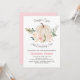 Uma abóbora pintada com aquarela branca cercada por rosas rosadas e folhagens frescas com um fundo rosa e texto rosa.