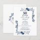Este elegante convite de aniversário de 50 anos de casamento dourado e azul marinho pode ser personalizado com suas informações em tipografia moderna. Criado por Thisisnotme©