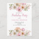 Cartão postal de aniversário floral de pêssego rosa elegante. Fácil de mudar o texto. Bonito design botânica de cor aquática de verão.