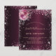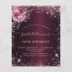 Para uma elegante festa de aniversário 40th (ou qualquer idade). Uma cor de fundo metálica de aparência falsa e burguenta. Decorados com poeira brilhante e flores, cor-de-rosa. Personalize e adicione um nome, idade e detalhes da festa. O nome é escrito com um script de estilo manuscrito