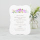 Convite de casamento floral com rosas de aquarela em roxo.