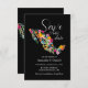 Um convite colorido de Salve a Data com um design de arte floral de jardim México.