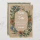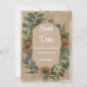 Madeira marrom rustica com laranja escura e verde e bela folhagem dourada desenhada à mão, floral de madeira Casamento Salve os convites para a data. Este na moda moderno convite para abstrato é perfeito para qualquer garota clássica e chique. Este design é ideal para um evento de festa de moda. Personalize este design com sua mensagem e informações personalizadas. Todas as designs são impressas