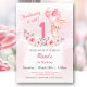 primeiro aniversario de convite cor-de-rosa e verde com um belo coelho, balões e rosas para o primeiro aniversario da menina ou qualquer outro Aniversário para uma garotinha:). Convite de aniversário totalmente editável, personalize facilmente todo o texto, incluindo o número de Aniversário. - Kate Eden Art