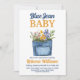 Convite Floral Denim Pocket Yellow Blue Jean Baby Shower
