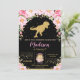 Incrível Convite de aniversário Floral Dinossaur. Apresentando uma silhueta de dinossauros dourada enfeitiçada por flores de aquarela, detalhes de confetti e dourado. Perfeito para qualquer idade! Personalize este convite do Dinossauro para excelente com o nome, a idade e os detalhes da festa do seu filho de forma fácil e rápida, basta pressionar o botão personalizar para reorganizar e formatar o estilo e a colocação do texto. c) O Feliz Cat Studio