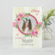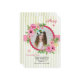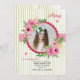 Este bonito, a aguarela, o círculo, o quadro da foto com os conjuntos de flores cor-de-rosa e a folha são suportados com um teste padrão verde e branco da listra. Aperfeiçoe para uma menina de toda a idade. (<a href='http://www.freepik.com/free-vector/pretty-background-with-watercolor-flowers-for-mother-s-day_1102231.htm'>Projetado por Freepik</a>). <br/><br/>O cartão é fácil de personalizar com seus fraseio, opções da pia batismal, do cor da pia batismal, as de papel da forma e escolha de seis tipos de papel<br/><br/>Não exatamente que você está procurando? Todos nossos produtos podem ser projetados para encontrar suas necessidades em nenhuma sobretaxa<br/><br/>Contacte-nos simplesmente em askcottonlamb@gmail.com. <br/><br/>Produtos de coordenação disponíveis: Apenas pergunte-nos!