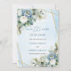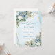 Convite Floral Dourado Azul Russo Moderno, Azul Branco