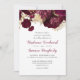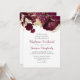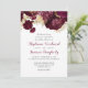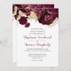 Um belo convite para o casamento, com uma borda floral de cor d'água em tons de burgundy, aparados com folhas de folha falsa de ouro e folhas brilhantes, sobre fundo branco. Personalize a cinza de carvão e o texto de burgundy com os nomes da noiva e do noivo em escrita decorativa. A parte traseira da placa apresenta um design floral correspondente.