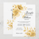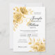 Convite Floral Dourado de Casamento de Script Elegante com