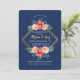 Um bonito, azuis marinhos, convite da aguarela com um quadro poligonal do ouro e conjuntos de flores e de folha cor-de-rosa e vermelhas. (<a href='https://www.freepik.com/free-vector/watercolor-floral-frame-with-golden-polygonal-lines_2628011.htm'>Projetado por Freepik</a>). <br/><br/>O cartão é fácil de personalizar com seus fraseio, pia batismal e cor da pia batismal<br/><br/>Não exatamente que você está procurando? Todos nossos produtos podem ser projetados para encontrar suas necessidades em nenhuma sobretaxa<br/><br/>Contacte-nos simplesmente em askcottonlamb@gmail.com. <br/><br/>Produtos de coordenação disponíveis: Apenas pergunte-nos!
