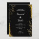 Convide seus hóspedes em estilo com este elegante convite de casamento floral preto e ouro, desenhado com um moderno motif de folha e detalhes falsos de ouro. Perfeito para casamentos chicos, luxuosos ou negras, este convite inspirado na flor dá o tom para uma celebração sofisticada. Totalmente personalizável com seus detalhes de casamento, este cartão faz parte de um conjunto coordenado de papelaria preto-e-ouro, incluindo cartões RSVP, cartões salve a data, inserções de detalhes, menus e cartões de agradecimento. Um design eterno para casais que querem um toque floral moderno com elegância glamourosa.