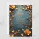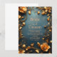 Torne o seu casamento inesquecível com este convite luxuoso que apresenta detalhes florais dourados sobre um fundo azul-turquesa elegante. As flores ornamentadas douradas e folhas onduladas enquadram o centro, proporcionando o espaço perfeito para mostrar os detalhes do seu casamento com estilo. Este design sofisticado é ideal para casais que buscam uma mistura de opulência e romance para o seu dia especial. O texto personalizável permite que você o personalize para combinar com o tema do seu casamento. Perfeito para casamentos formais, glamorosos ou com tema vintage.