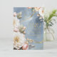 Esta suíte de casamento com seus florais exuberantes e dramáticos de branco cremoso a rosa pincelado, sotaques dourados e belos e poeirentos fundos azuis, cria uma vibração elegante e romântica, dando apenas uma dica do que os convidados podem esperar no seu grande dia. Este convite de casamento impressionante sobre um fundo de azul empoeirado fornece uma modelo para adicionar facilmente seus detalhes de evento em texto de ouro luxuoso. Procure ID1022 para ver todos os produtos nesta suíte de casamento.