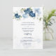Personalize este Convite de Casamento Floral Azul Moderno com Dusty Botânico clicando no botão "Personalizar". A carta apresenta um moderno e elegante chic com flores azuis empoeiradas, de cor branca, azul claro e verde-oliva. TIP: Excelente para festas surpresa, chás de fraldas, recepções de casamento e festas de aposentadoria.