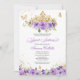 Doce 16 convites em tons lilás e lavandas de púrpura com borboletas de ouro e uma bela tiara. Visite o compro para obter mais variações, incluindo garotas em vestidos com tons de pele diferentes e combinações de cores. Também uma versão Quinceanera desta design.