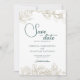 Rosa de botânico e floral e design de folhagem elegante Salvem o Cartão de Convite de Data com fonte de script e tema de cor verde esmeralda. Personalize com os detalhes do seu dia especial.