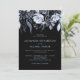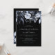 Estes convites para casamento modernos e elegantes apresentam lindas flores aquáticas em preto, branco, azul e um fundo preto. Usamos arte de LABFcreations.