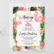 Traga um toque de paraíso para sua celebração com este Convite Floral ao Chá de fraldas Flamingo. Apresentando um flamingo rosa encantador rodeado por folhas tropicais exuberantes, florais cor-de-rosa macio e uma elegante borda dourada, este convite é perfeito para um pequeno chá de fraldas com tema flamingo. Quer você esteja planejando uma reunião de verão ou uma reunião caprichosa, esta design tropical dá o tom para um dia divertido e festivo. Faça seu chá de fraldas inesquecível com este na moda e um convite vibrante. BBS197