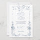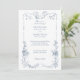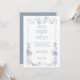 Convite Floral francês azul-poeirento elegante