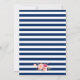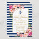 Convite Dourado Floral para Casamento Náutico Blue Stripes Watercolor Pink Blush - Script Dourado