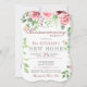 Convite de festas elegante de casa, russo, com pincel rosa-pincelado e vermelho-burgundy pintado rosas de pedras com folhas verdes e folhagem, e com uma trendy chic lettered handtered editable Life. +++++++++ Adequado para primavera, jardim de verão ou outono / quintal exterior / vintage nova casa floral / festa de aquecimento doméstico ou churrasco.