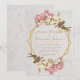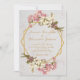 Este elegante convite de casamento floral geométrico combina várias tendências de 2019: geométrico, mármore e metálico (dourado).
