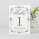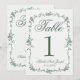 Classy and elegant old money white and emerald green wedding table numbers. As you see it features a white old money background with green rustic script that match the whole suite. And green floral frame.