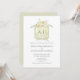 Convite Floral Green Watercolor Monogram Crest Wedding