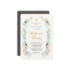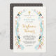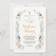 Bonito convite batismo inspirado na flor-da-selva com um quadro composto por louros azuis, flores silvestres cor-de-rosa e sotaques dourados. As delicadas mangas pintadas rodeiam o seu texto anunciando seu dia especial - com uma cruz no topo do quadro. Em lindos azuis, pinks, dourados e castanhos com grão de madeira de pássaros no verso.