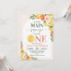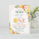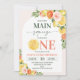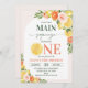 Floral Lemon Orange Our Main Squeeze primeiro aniversario Invitation Sweet nosso principal sorriso limão floral e laranjas primeiro convite de aniversário para uma menina com arco branco, dois arranjos e um título de caligrafia moderno. Este convite de primeiro aniversario de aperto feminino principal é um tema de primeiro aniversario doce.