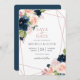 Convite Floral Marinho e Blush Geométrico Salvar a Data In