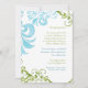 PALETA DE CORES: azul aqua, azul céu médio, verde menta, verde esmeralda. COLEÇÃO DE DESENHOS: Anúncio de Save the Date correspondente, cartões de anúncio de noivado. Este conjunto de convite de casamento é criado a partir de ilustrações originais de aquarela de Audrey Jeanne Roberts. Padrões delicados e modernos de folhas em redemoinho em azul e verde dançam em torno do convite com um par de libélulas lindamente detalhadas. Há uma fonte elegante e manuscrita Ampersand com o nome dos noivos e a data do casamento na frente. O verso tem os redemoinhos pintados à mão que florescem o texto do convite. Este é um convite de casamento de dois lados.
