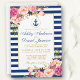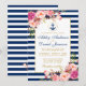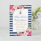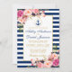 Convite Floral Náutico Blue Stripes Pink
