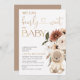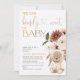 Bold Floral Podemos Ampliar o Convite para Chá de fraldas de Espera Podemos esperar muito tempo um convite para chás de fraldas neutro em relação ao gênero, com uma caligrafia moderna em uma folha de ouro falsa, um adorável arranjo de aquarela e um urso bonito vestindo um casaco. Podemos esperar que o chá de fraldas seja ideal para um chá de fraldas neutro em termos de gênero.