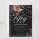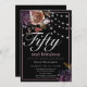 Convite Floral Negro Elegante 50 e aniversário fabuloso