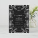 Os ramos entrelaçantes se curvam e se enquadram nesta elegante design botânica. A ilustração botânica antiga, juntamente com a bela fonte branca e as escolhas de script fazem disso um belo cartão de data salvo. Desenho fino de linhagem vintage de flores delicadas, folhas e caules sobre um fundo preto dá o tom para um tema de casamento inspirado na natureza. Convide seus convidados com este belo e elegante encontro. Os campos de texto modelo são pré-projetados para permitir que você personalize facilmente. Por favor, dê uma olhada nos outros itens desta coleção para juntar todo o tema do casamento!